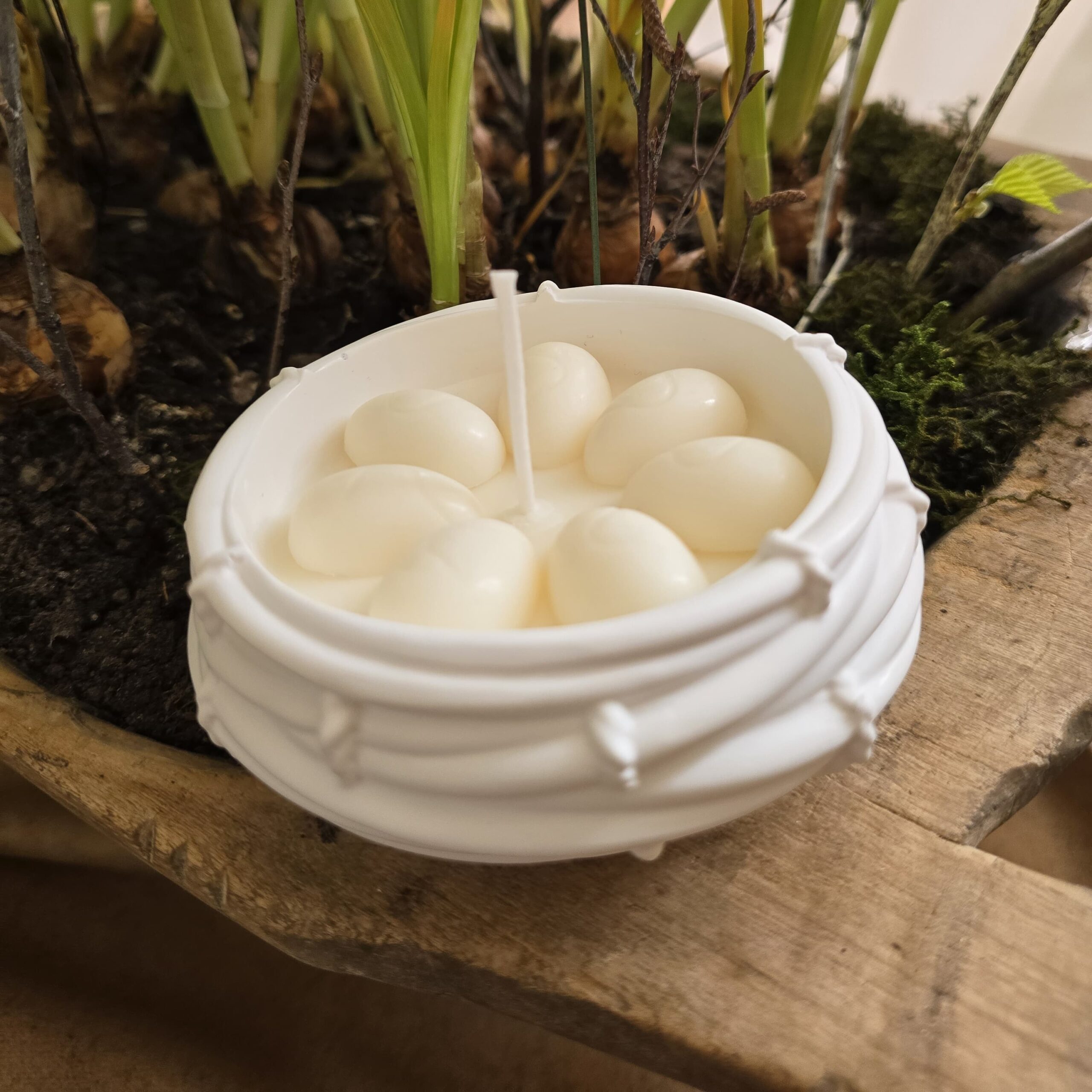 Lumânarea *The Nest* este o piesă decorativă caldă și primitoare, prezentată într-un cuib de ceramică ce transformă fiecare moment într-un refugiu de liniște și bucurie.